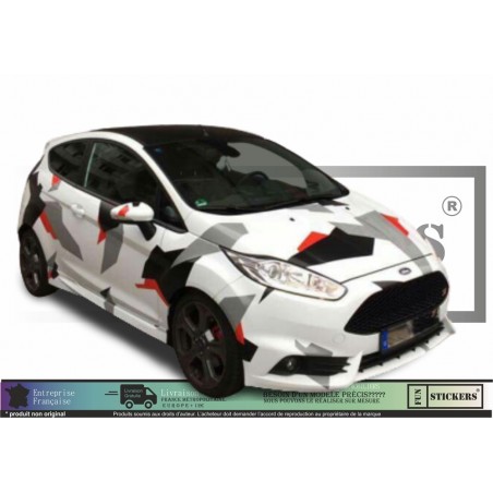 Transformez votre véhicule avec ce kit camouflage géométrique au style sportif et moderne. Idéal pour personnaliser une Ford Fiesta MK7 ou tout autre modèle compatible. Impression haute qualité sur vinyle premium.